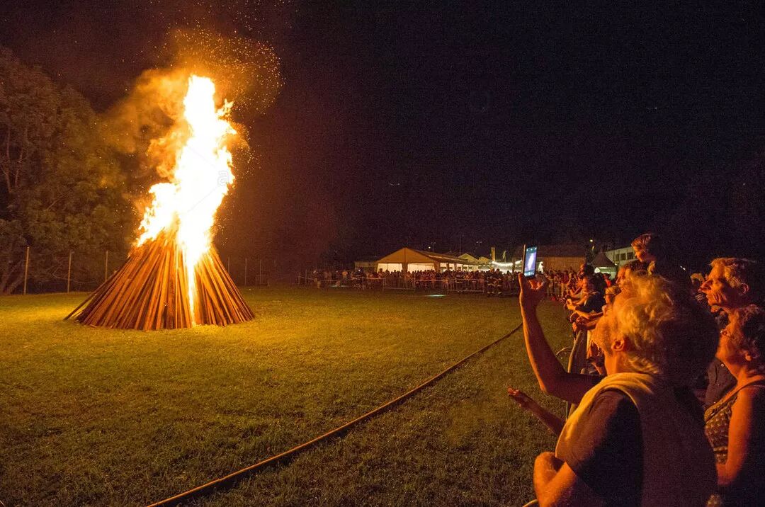 高处燃篝火是瑞士长久以来的传统,用来警示国民危险即将来临。圣徒故事的传说中,入侵的游牧民看到日内瓦湖和比尔湖中的篝火的倒影,以为自己已经来到了世界尽头,再向前就要进入天国,于是宣布撤军。不管是不是真的为了纪念这一事件,还是单纯觉得有趣,国庆节当日,较为富裕的地区都会燃放焰火、围着篝火庆祝。大街小巷的房屋都悬挂着国旗、州旗和地区旗帜,面包师也会在特制的面包上插一面小小的瑞士国旗。